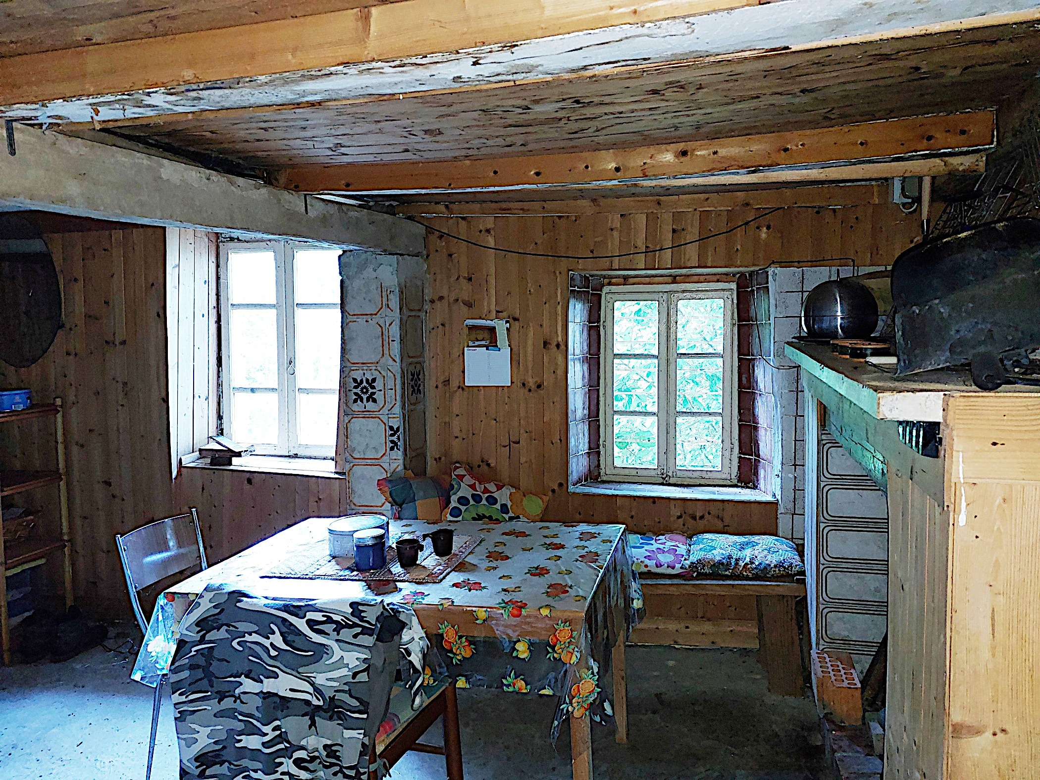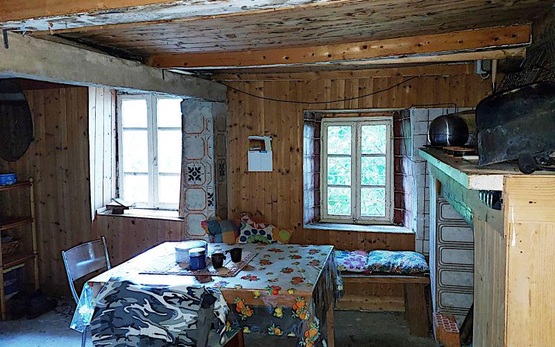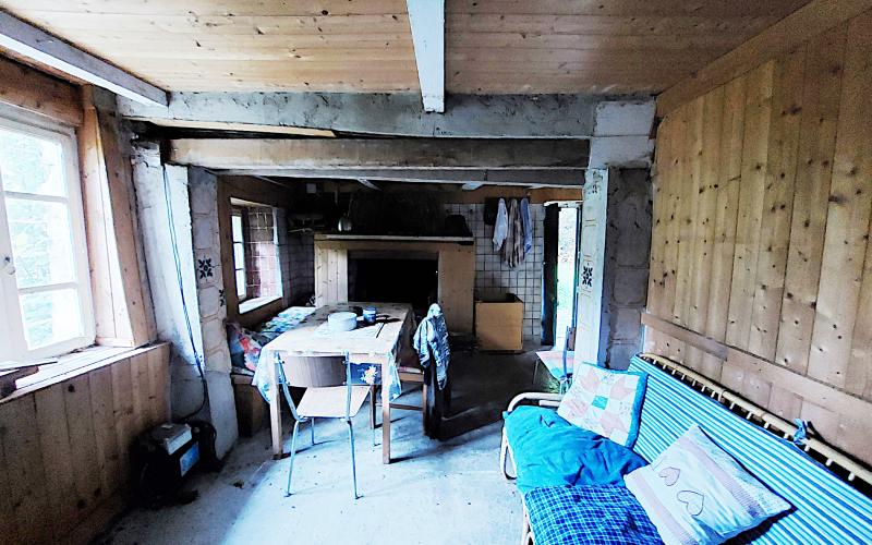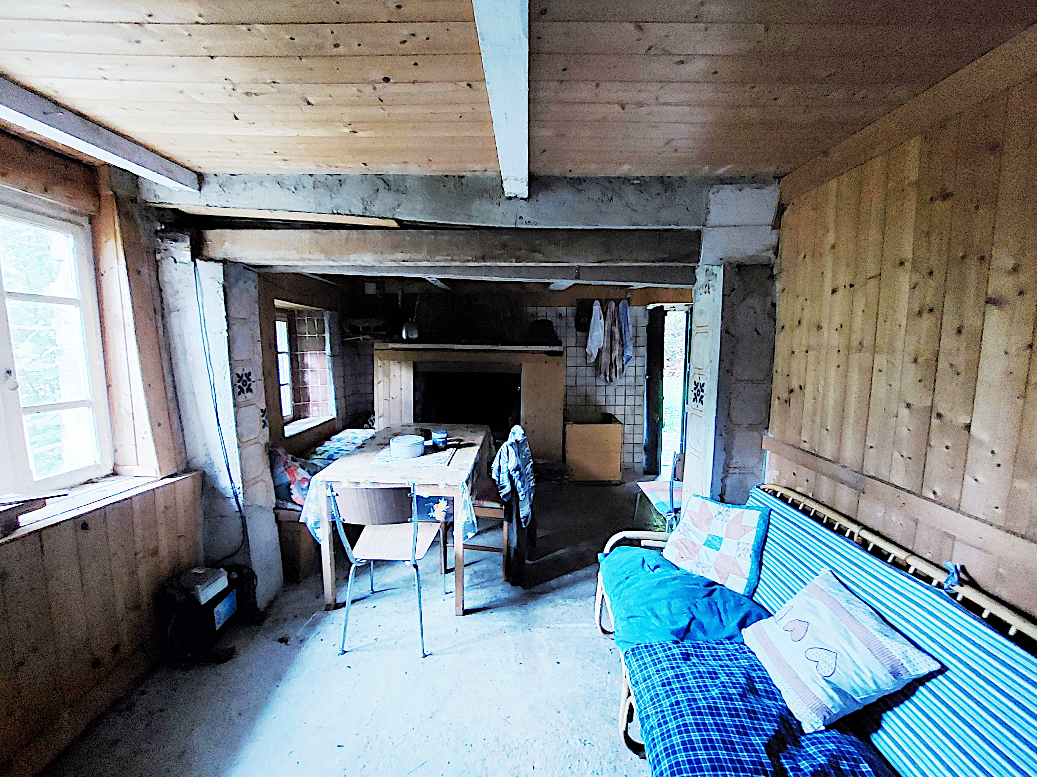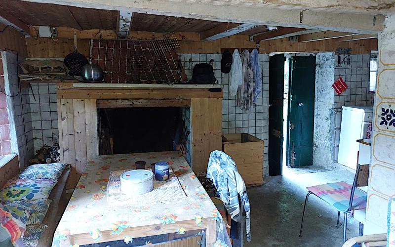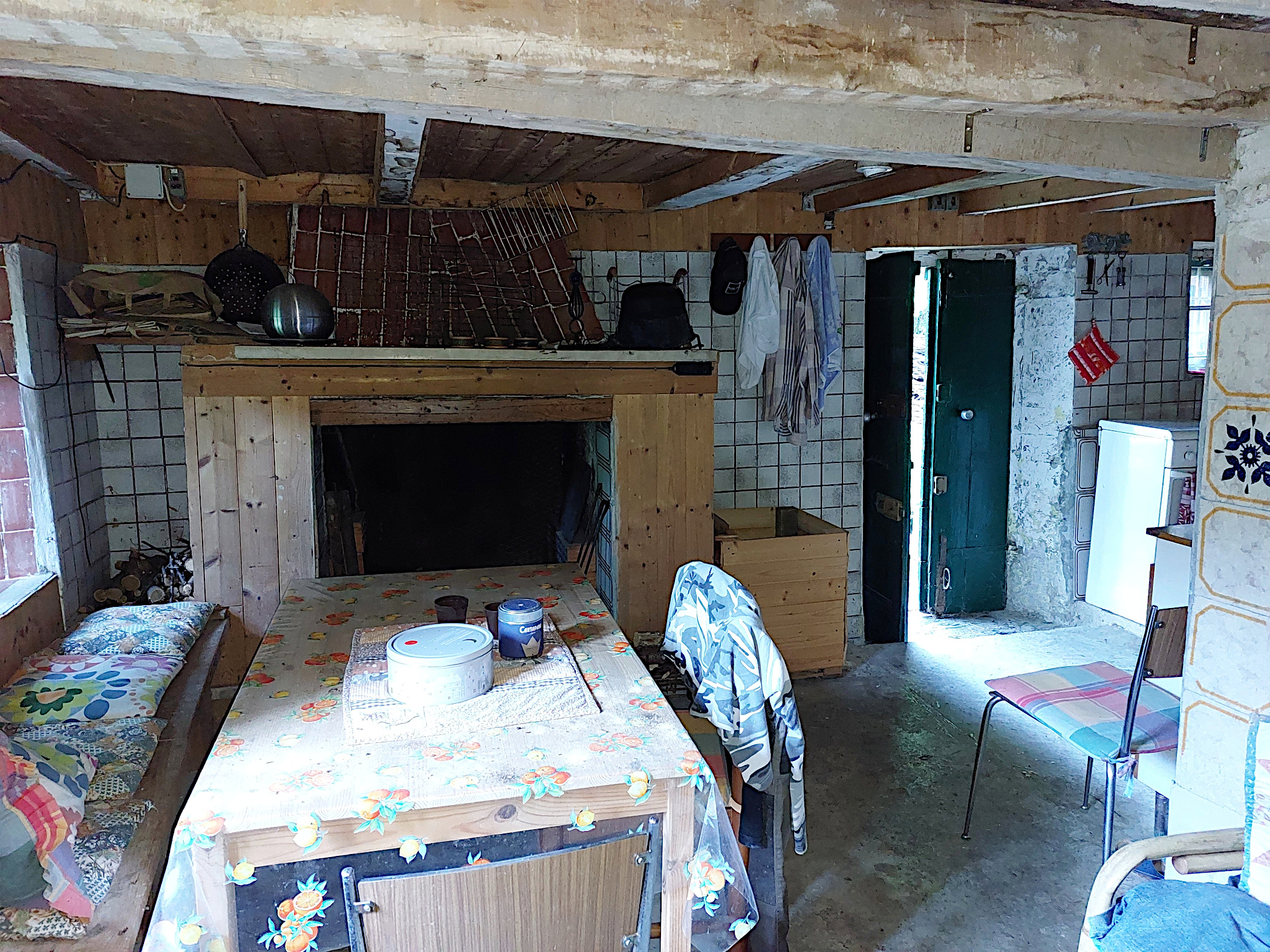 The property spans two levels, each with spaces that can be enhanced and personalized. The basement consists of two large cellars, versatile spaces that can be used as a tavern or pantry. On the first floor, there is a kitchen with a wood-burning fireplace, a bathroom, and a woodshed, perfect for those who wish to warm up with the charm of traditional fire. This floor offers the opportunity to create a cozy living area with views of the surrounding meadows.