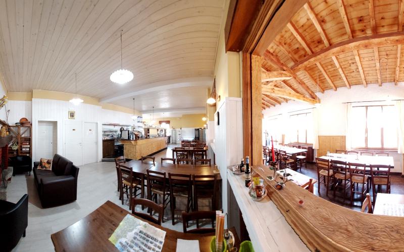 On the ground floor, there are a bar, a restaurant, and a pizzeria overlooking a large panoramic terrace with a covered porch — ideal spaces for welcoming guests in every season.