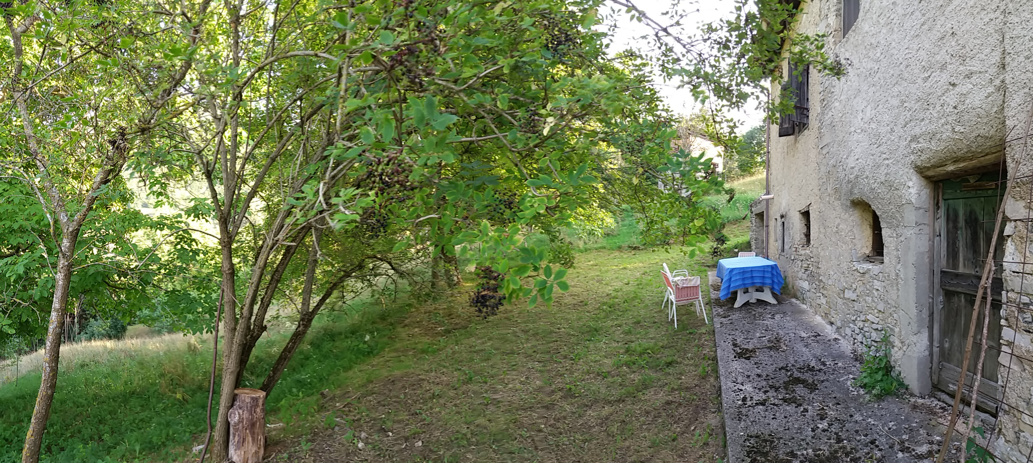 Le rustico est entouré d'un terrain de 34 000 m², dans lequel se trouve également un petit bâtiment, utile comme débarras ou remise à outils.