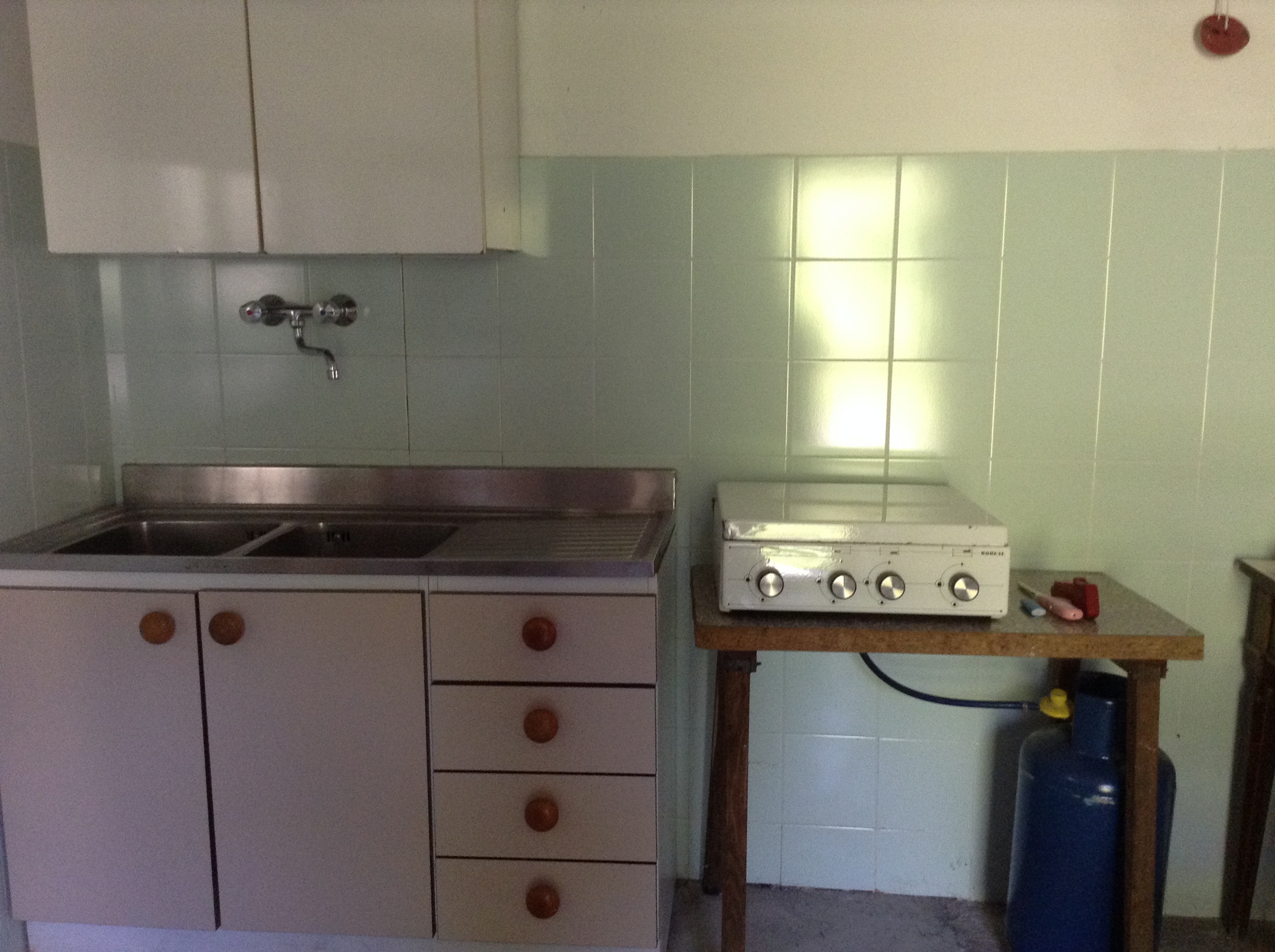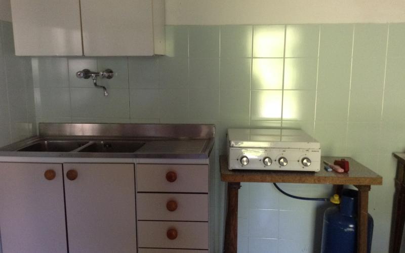 En passant par une première pièce, aujourd'hui utilisée comme entrepôt d'outils, on accède à ce qui était l'ancienne cuisine.