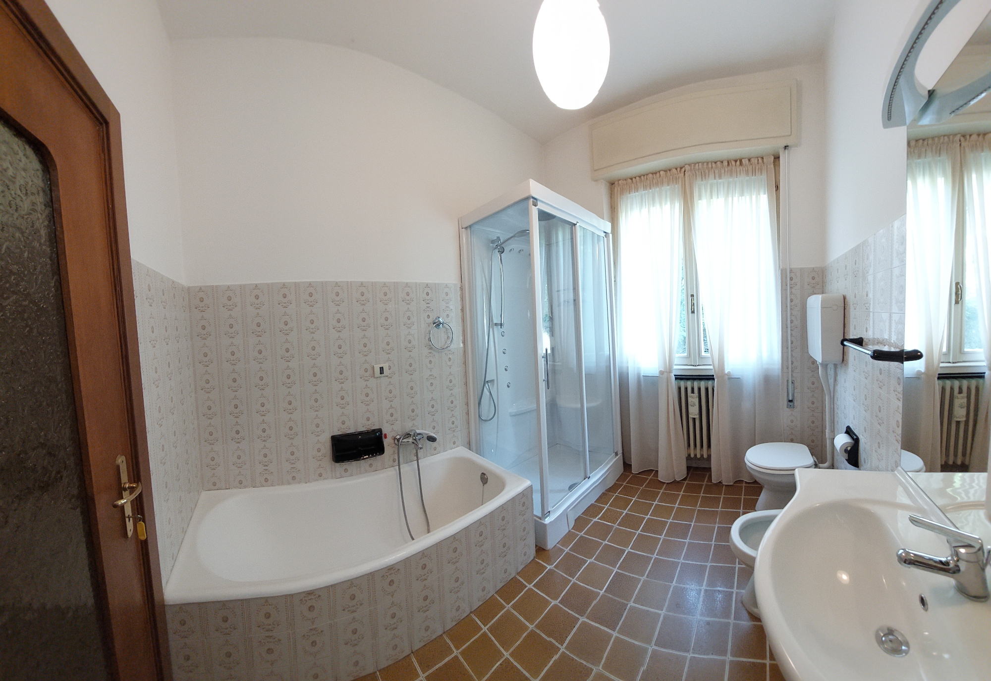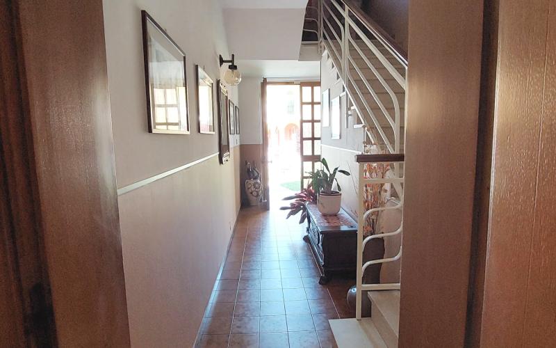 da un lato l'ingresso indipendente tramite un’ampia terrazza coperta, che introduce all’interno della casa attraverso un corridoio spazioso e ben distribuito; dall’altro, l'ingresso condiviso con l’unità del piano superiore, che collega anche al piano sottotetto – dove si trova un solaio di circa 80 mq di proprietà esclusiva – e al piano terra, dove sono ubicati il garage singolo (18 mq), una cantina con ripostiglio di circa 30 mq e un locale deposito, perfetto come spazio multifunzionale.