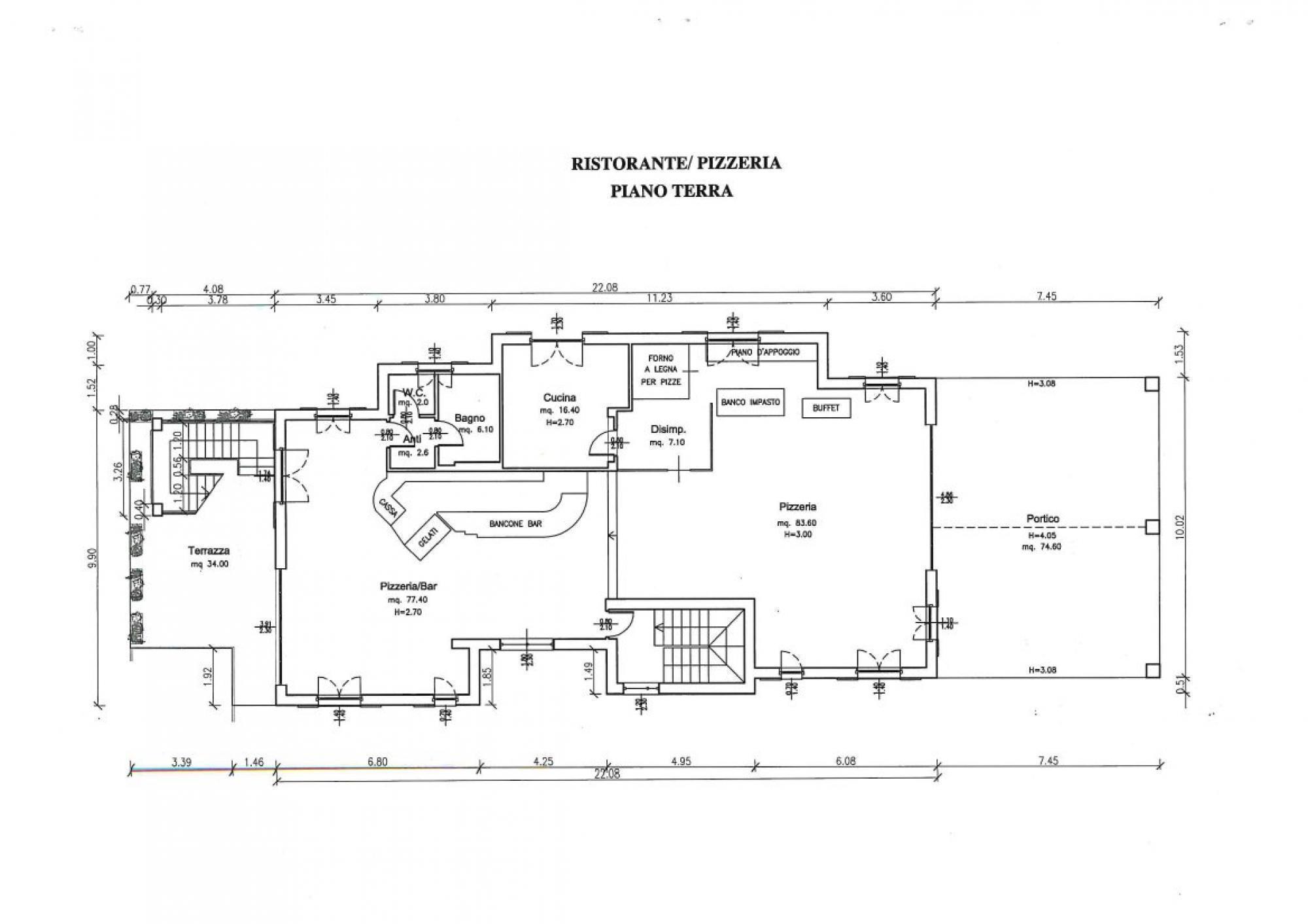 - a piano terra, bar, ristorante/pizzeria, terrazza e portico;