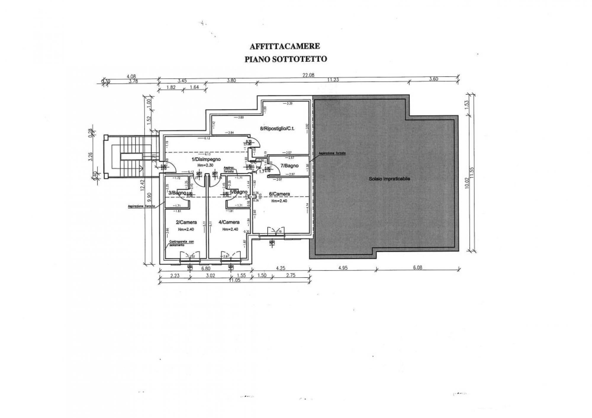 - a piano sottotetto, parte del B&B con tre camere con bagno e ripostiglio;