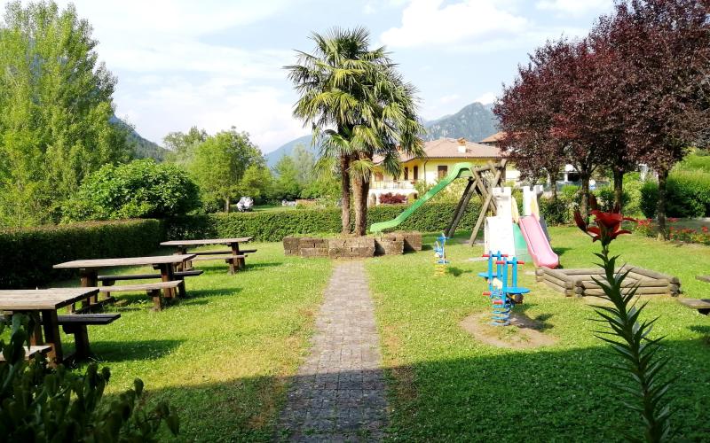 Nella proprietà è compreso l'ampio parcheggio, l'area giochi e un terreno per un totale di circa 2500 mq di area esterna.