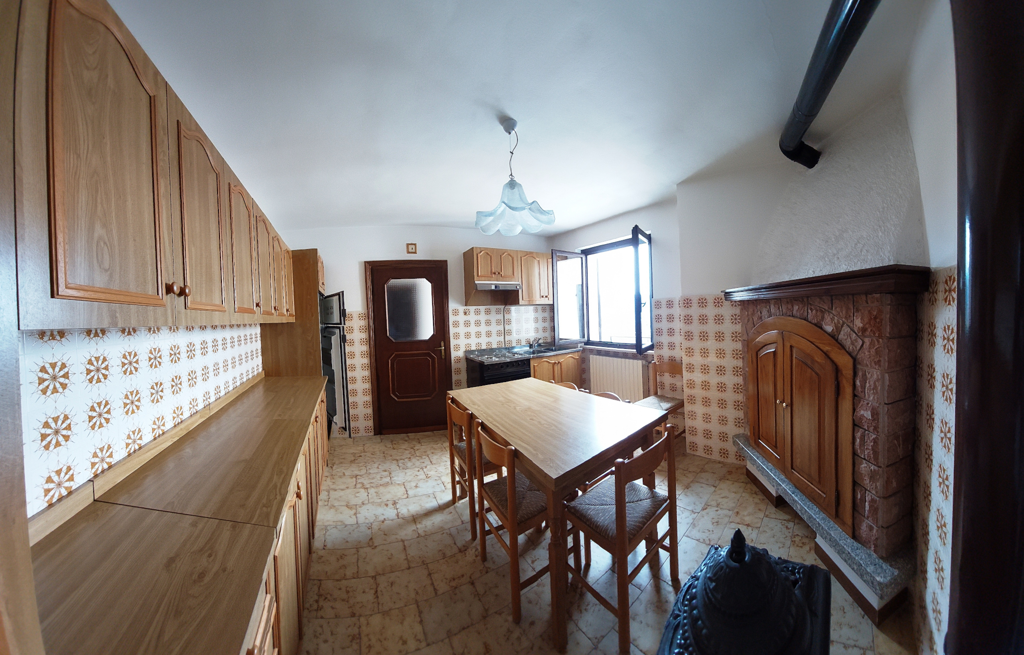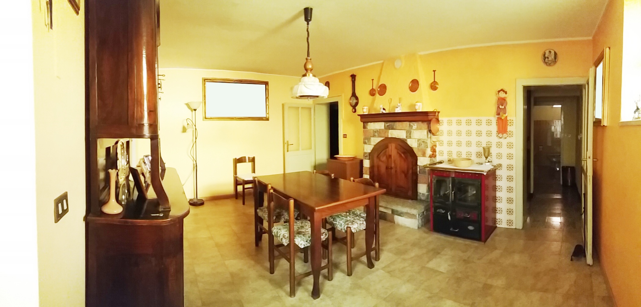L'abitazione, molto luminosa perché baciata dal sole, è composta da cucina, cinque camere, due bagni, taverna con angolo cottura e caminetto a legna.