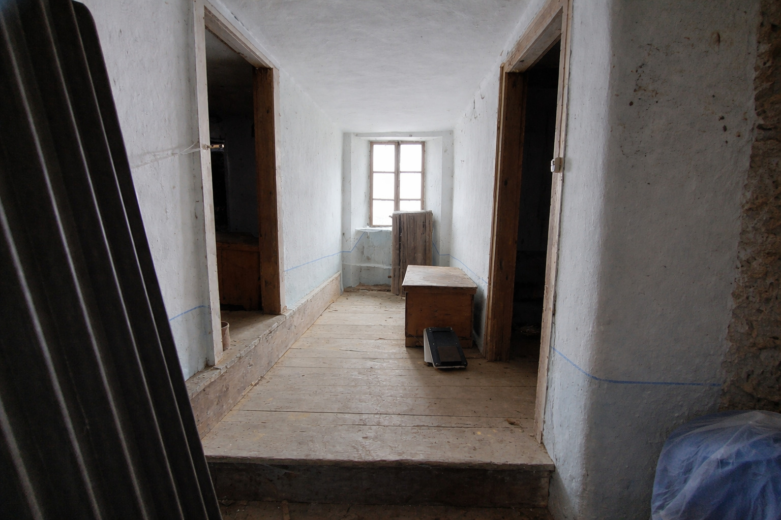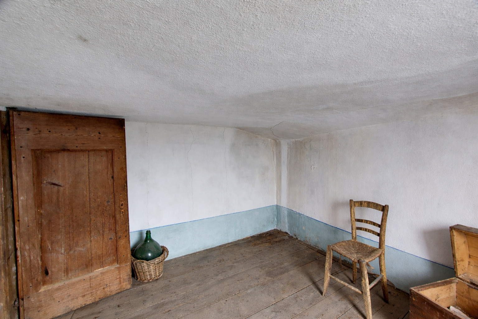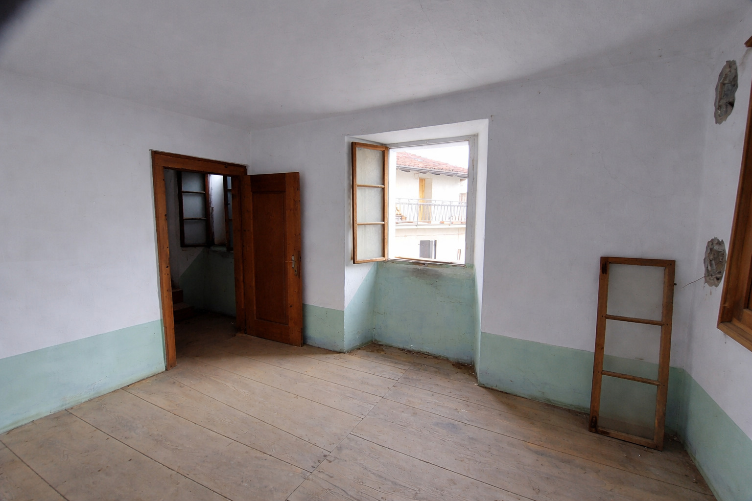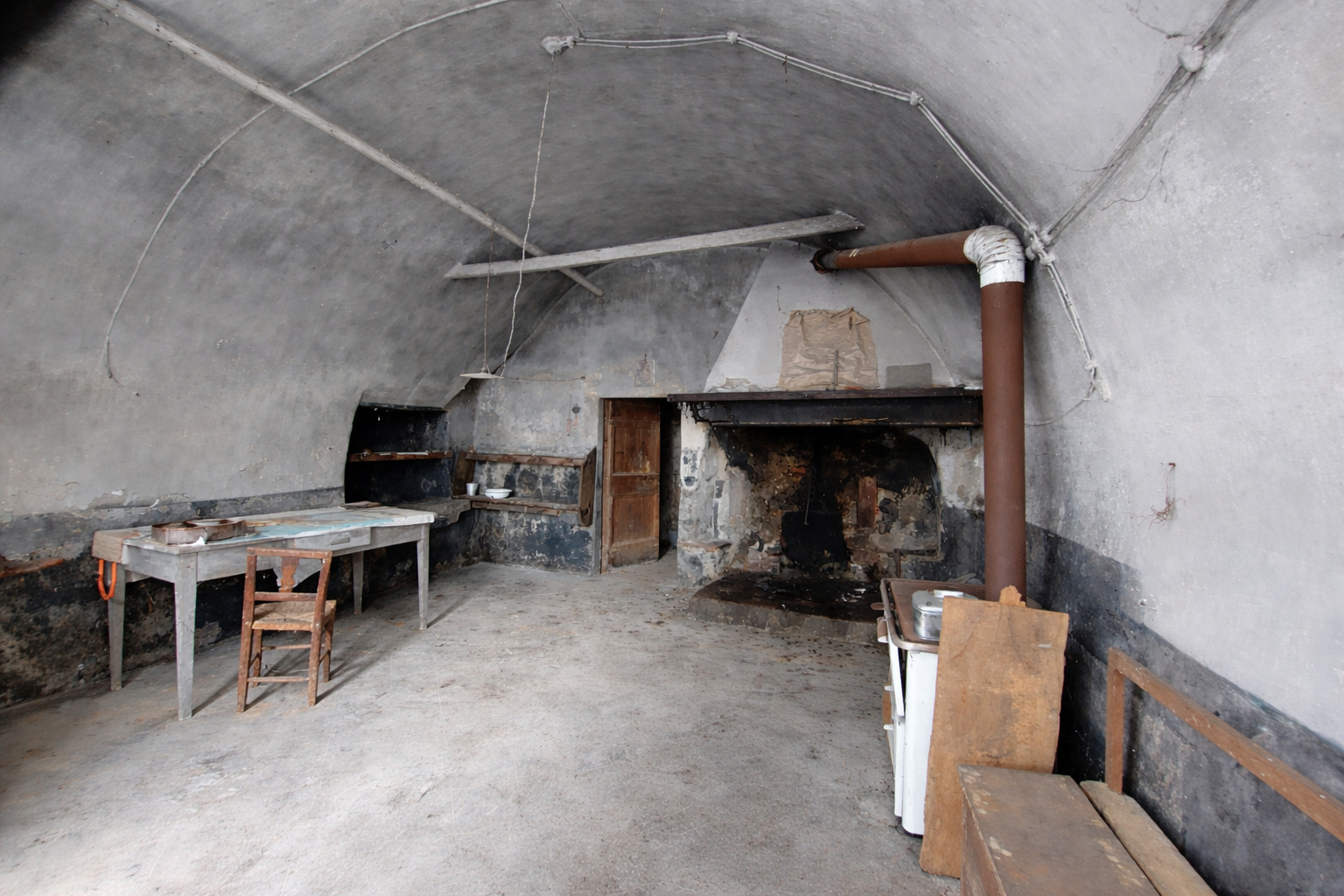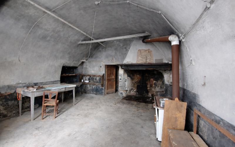 Salendo al primo piano si sviluppano una cucina, una stanza e un ulteriore deposito.