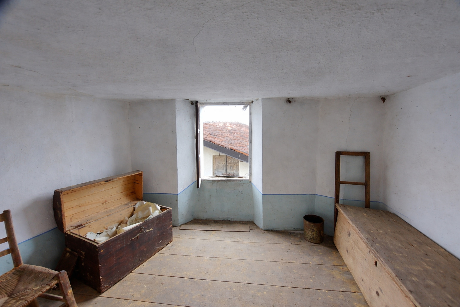 Al secondo piano troviamo una camera, una stanza, un ampio fienile e un balcone con vista panoramica sulle montagne circostanti.