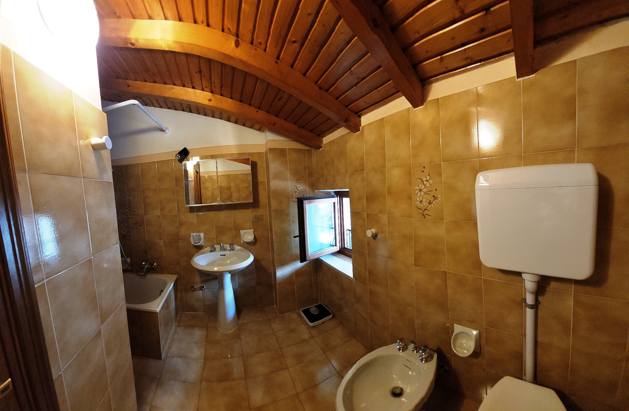 L’immobile si sviluppa su tre livelli. Al piano seminterrato si trovano il garage, una cantina con volto e pavimento in mattoni ideale per lo stoccaggio di vini e alimenti, un ripostiglio e la centrale termica. La scala interna conduce al piano rialzato composto da cucina con ingresso da Via Zappatori, soggiorno, studio e bagno di servizio finestrato con doccia. Tramite la stessa scala si accede al piano sottotetto mansardato, coibentato e caratterizzato da travi in legno a vista, dove sono presenti tre camere da letto, di cui una con balcone, e un bagno finestrato con vasca.