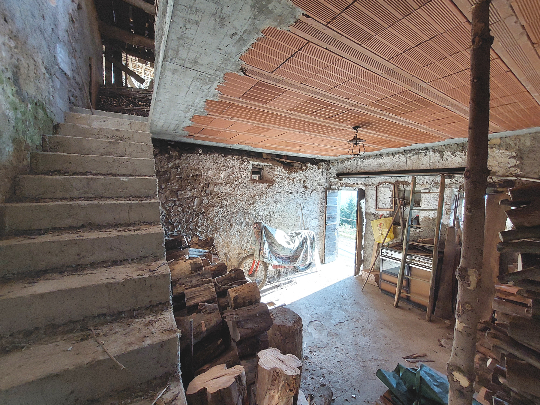 La struttura presenta solette e coperture in legno con tetto in coppi tradizionali, elementi che raccontano la storia e la semplicità di un tempo.