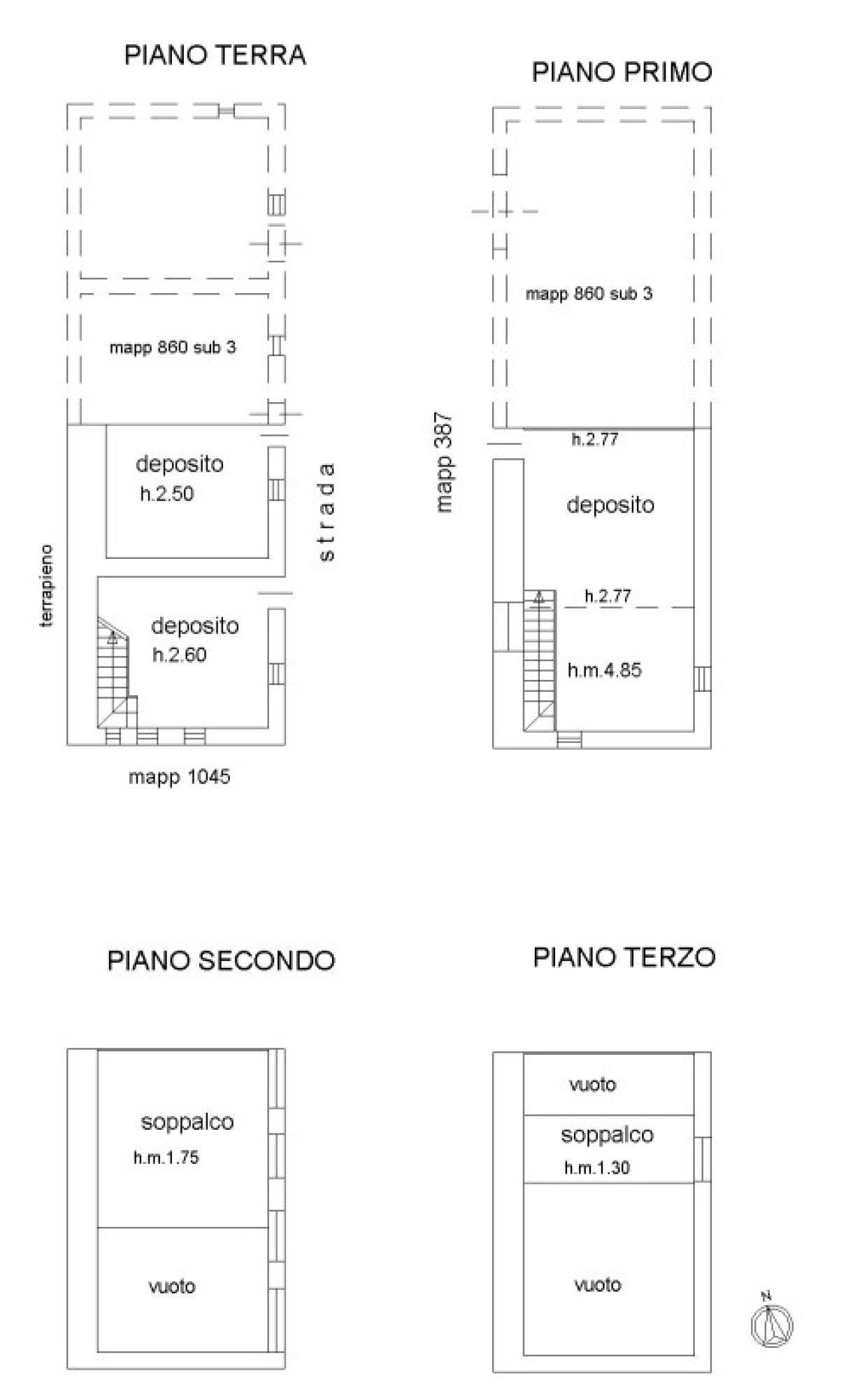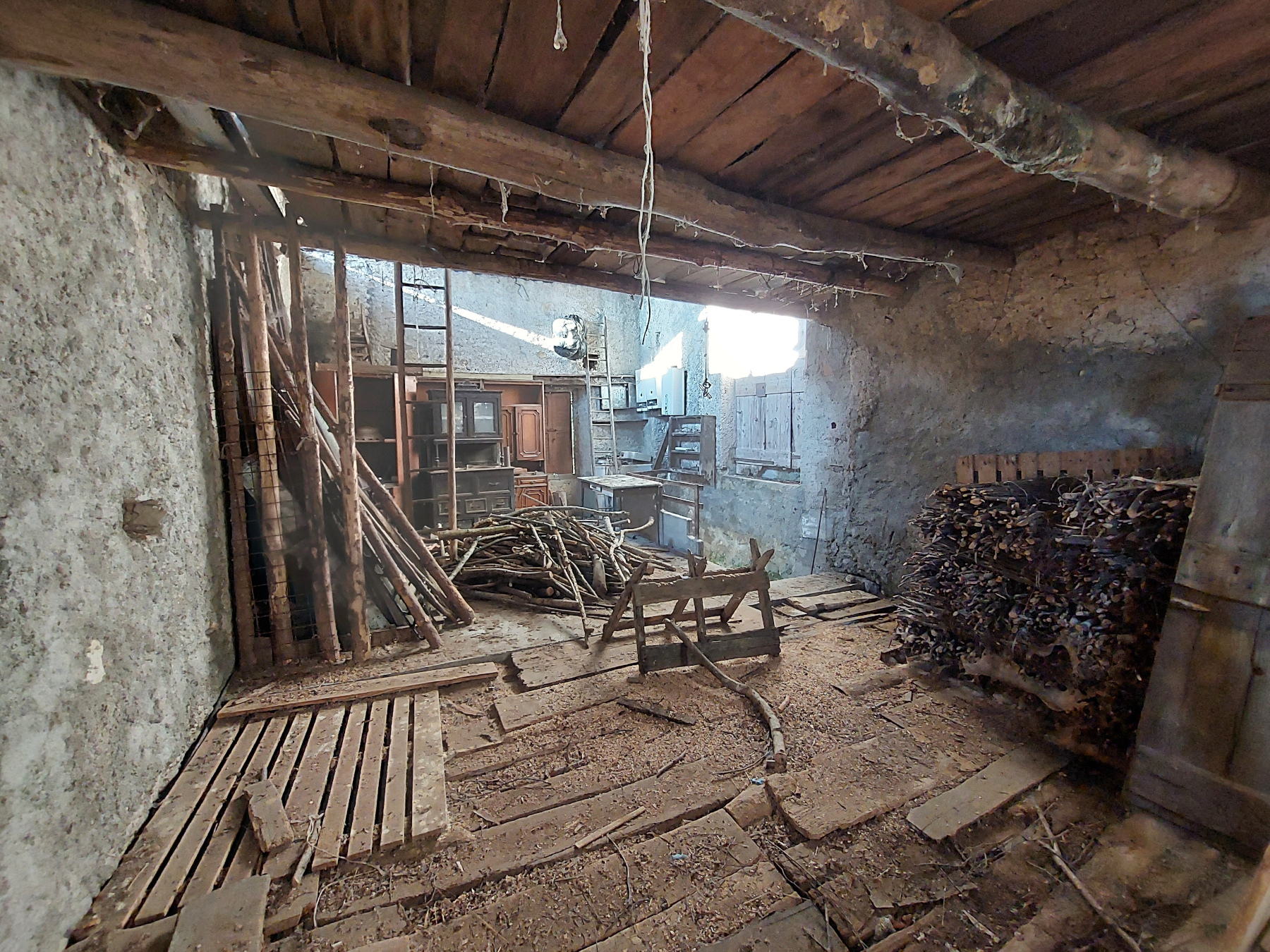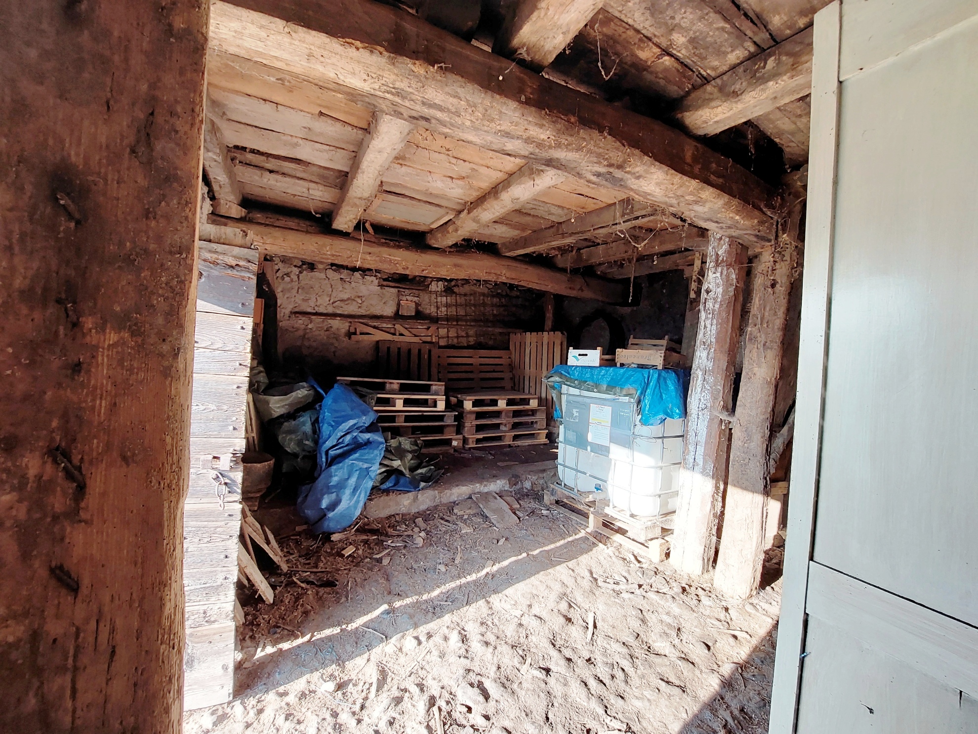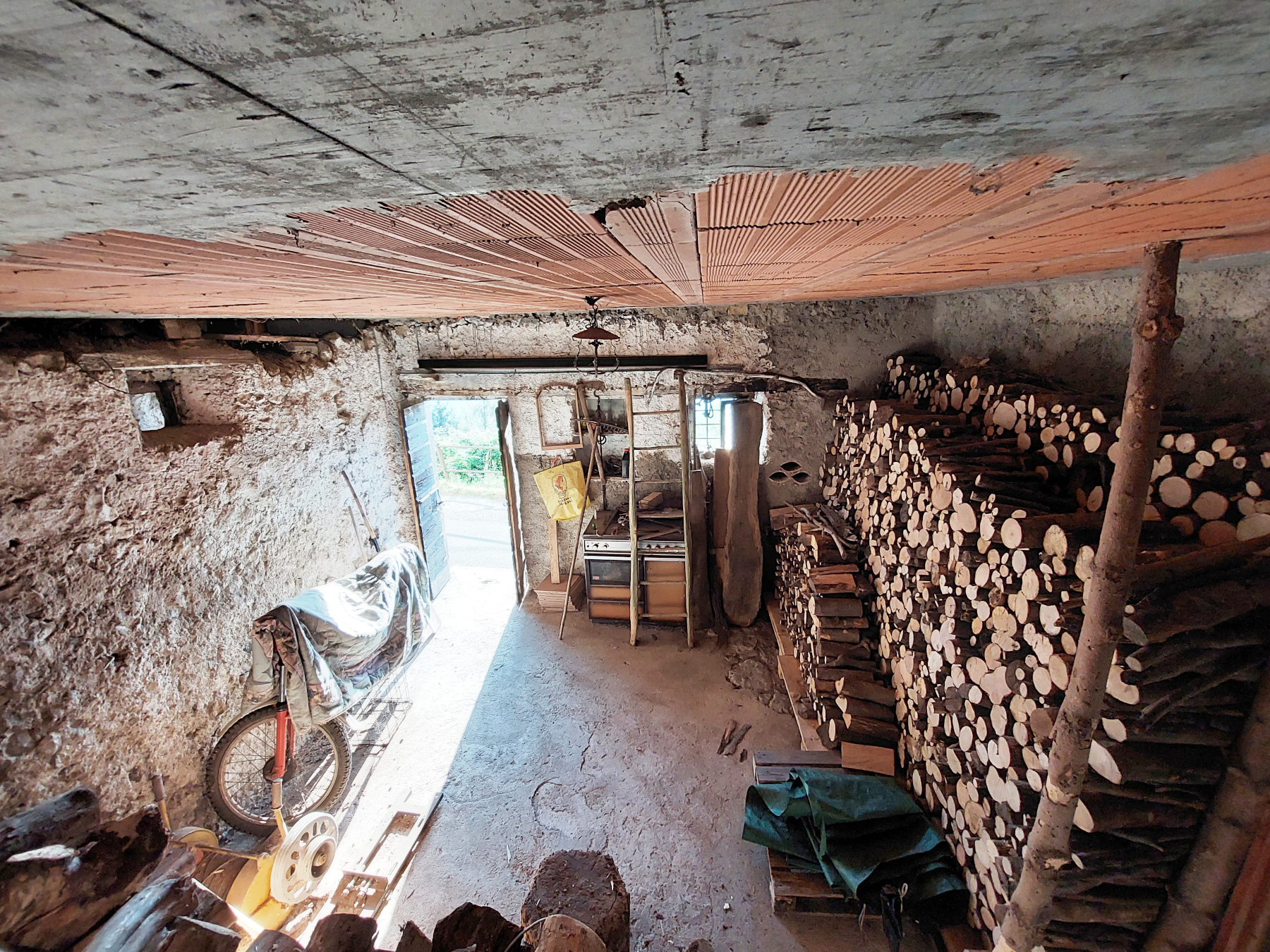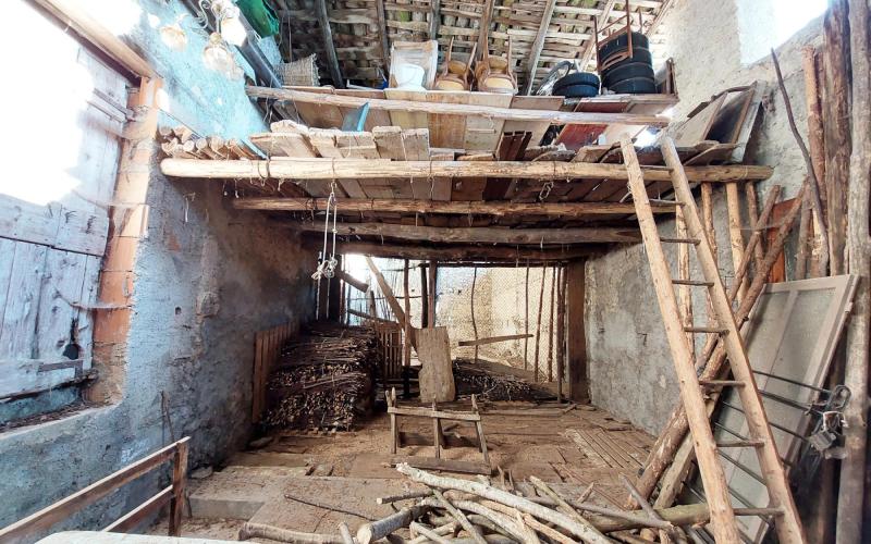 L’edificio, da ristrutturare, si sviluppa su più livelli. Al piano terra si trovano due locali adibiti a deposito, al piano primo un unico locale di deposito è raggiungibile tramite una scala in calcestruzzo, mentre ai piani superiore sono presenti due soppalchi in legno, che conferiscono al rustico un carattere autentico e rustico.