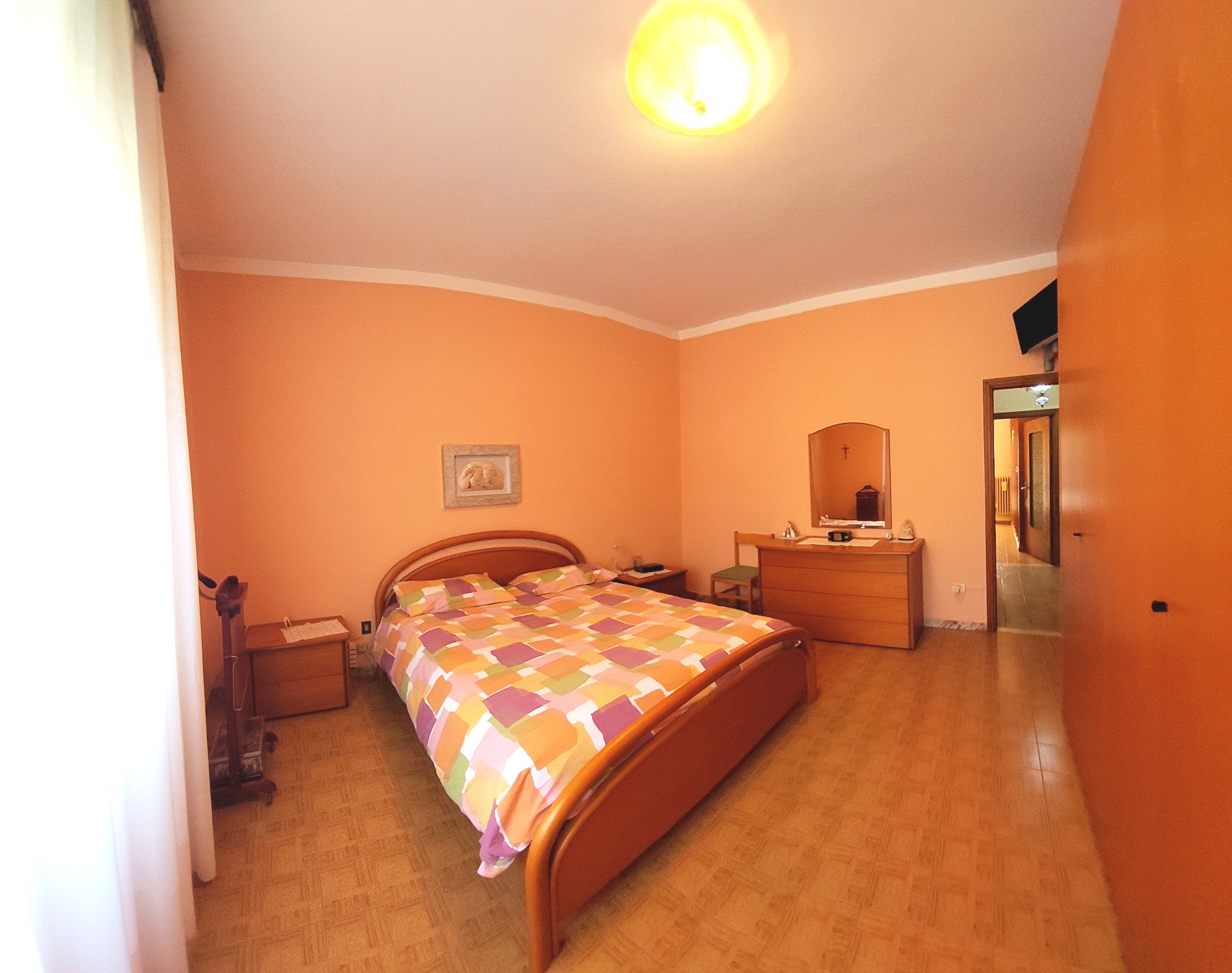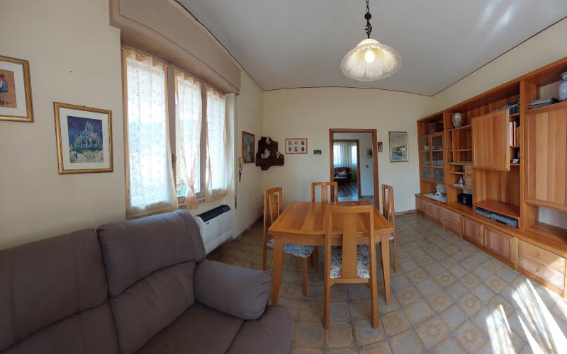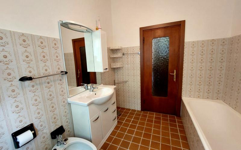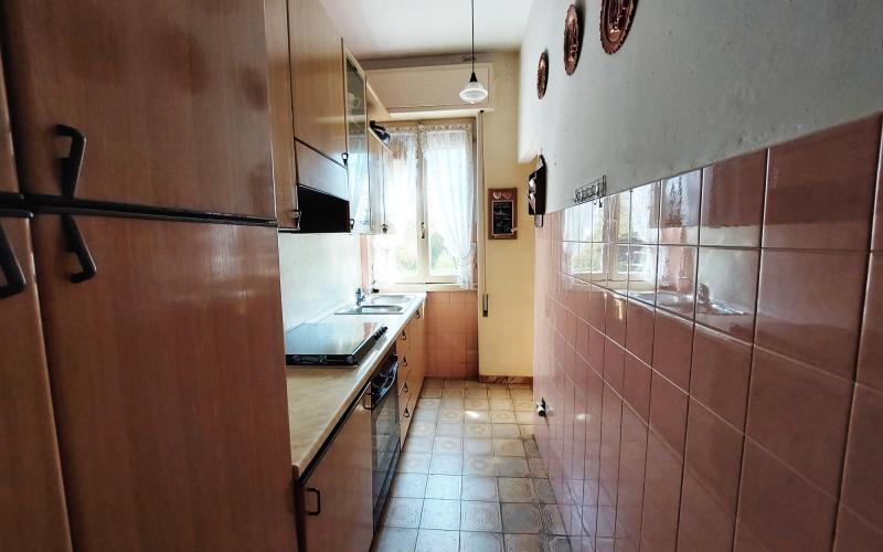 El apartamento, independiente y autónomo, consta de espacios amplios y luminosos: salón, comedor con cocina contigua, un pasillo central que da acceso a una habitación individual, dos dormitorios dobles (uno de ellos con balcón) y un baño con ventana, equipado con bañera y ducha.